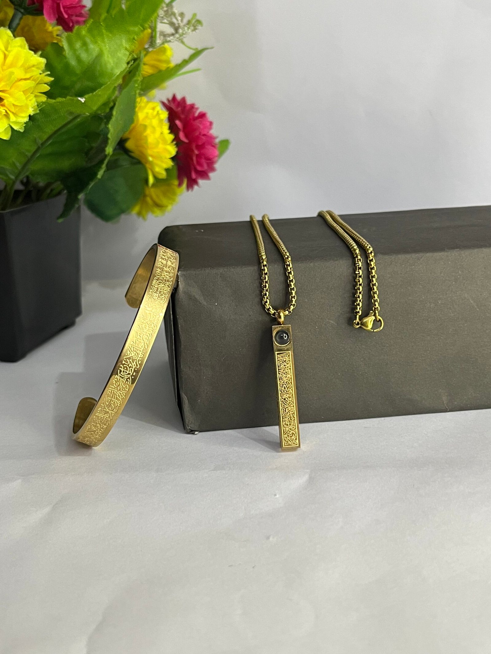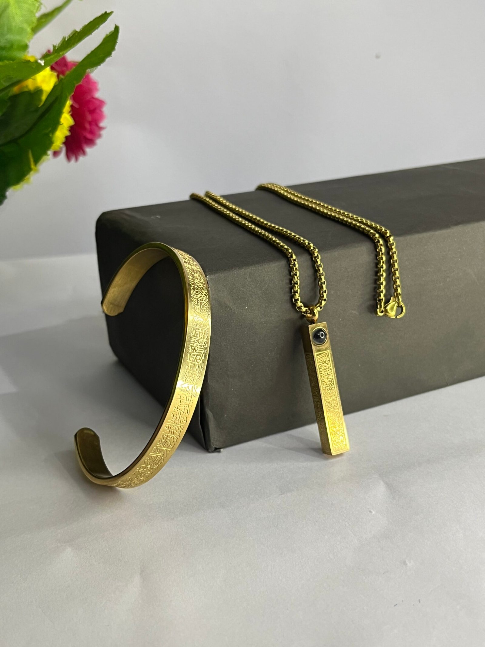 3 reviews for (2 in 1 Combo) Golden Ayat Al-Kursi Bar Pendant + Ayat Al-Kursi Bracelet